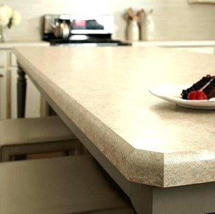 Laminates are plastic-coated synthetics with a smooth surface that's easy to clean. Countertops are made by bonding the laminate sheets to a particleboard (MDF) core. This affordable material was once ubiquitous in American homes. Plastic laminate is durable and hard-wearing, making it a surprising resilient option. It's easy one of the most affordable countertop materials out there and has the added convenience of being one of the few available as ready-to-install slabs at home centers. Plastic laminate also comes in sheets that are cut to fit. Installation is fairly quick, helping to keep costs down. It's biggest downfall is that it's not heat resistant, so you need to be careful when placing hot pots and pans down.